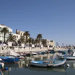 Plaja de la acest hotel din Bari are parasolare.